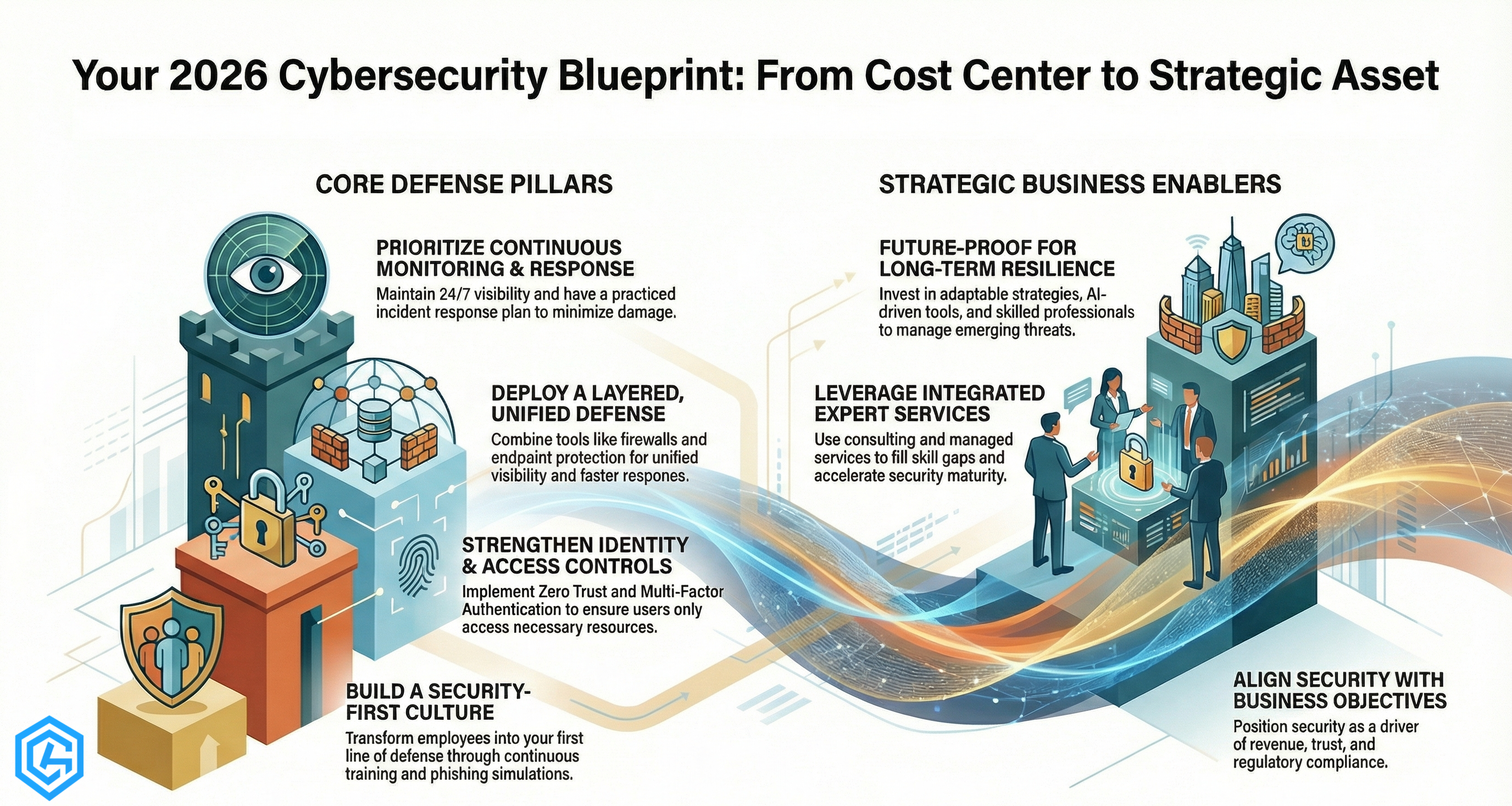 A practical 10-point roadmap for building resilient cybersecurity in 2026: culture, IAM, layered defenses, monitoring, cloud security, compliance, and expert support.